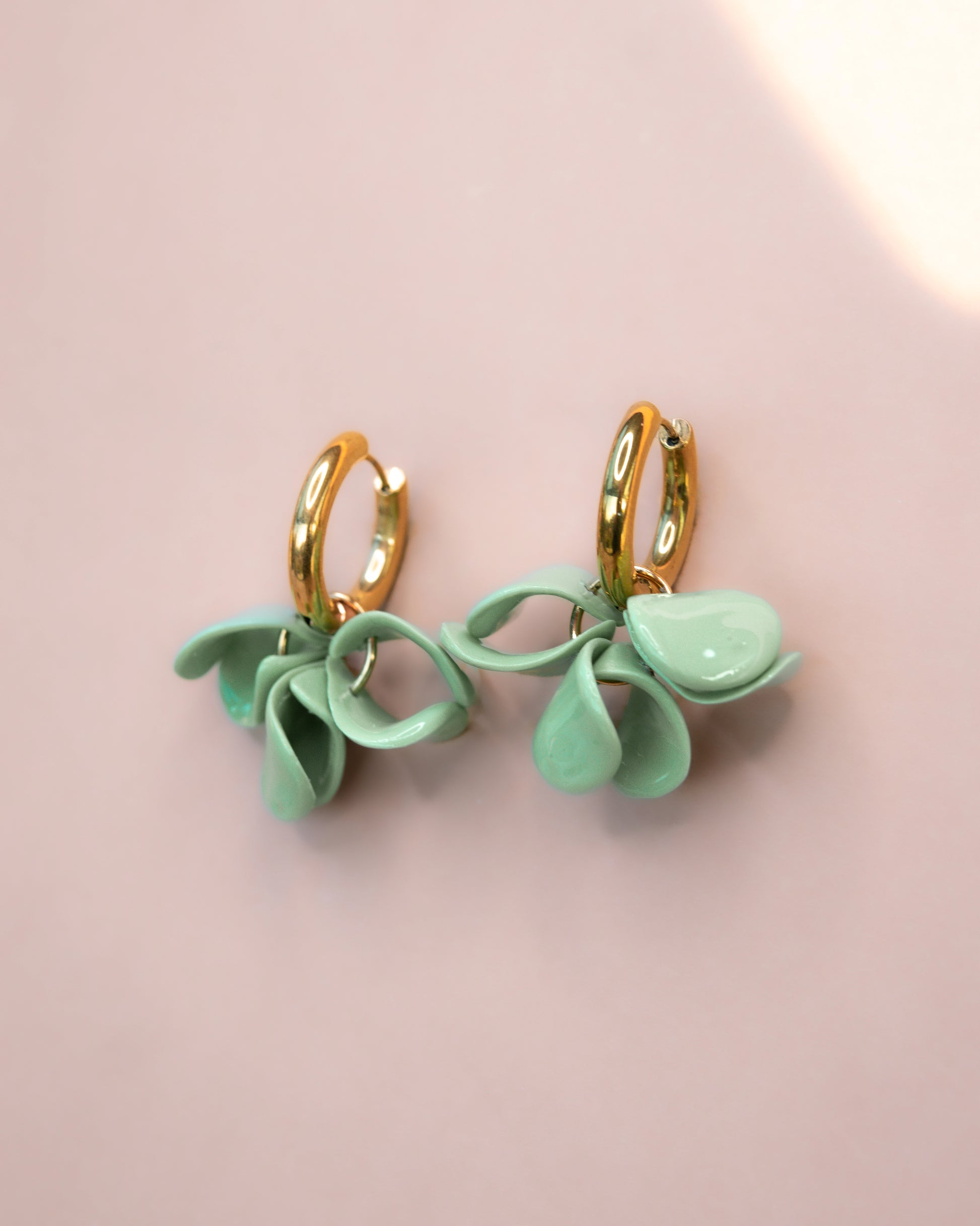 Confectionnées en argile polymère et protégées par une fine couche de vernis, ces boucles d'oreilles pétales sont montées sur des créoles en acier inoxydable hypoallergéniques, adaptés aux peaux sensibles.